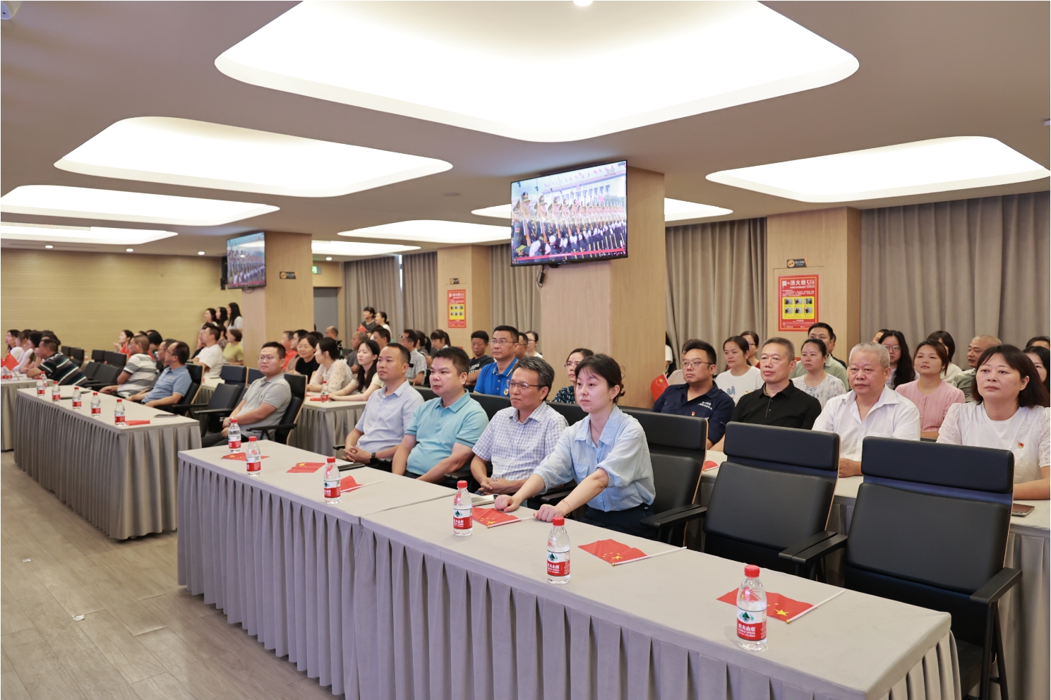 為弘揚愛國主義精神、激發員工民族自豪感,長沙新港公司于9月3日上午9時,在多功能會議室組織全體干部職工80余人集中收看“紀念中國人民抗日戰爭暨世界反法西斯戰爭勝利80周年閱兵式”直播。活動中,全體人員嚴肅認真觀看,隨著受閱方陣整齊的步伐、先進裝備的震撼亮相,現場不時爆發熱烈掌聲。