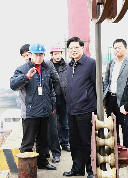 2月28日,湖南省委副秘書長、省委政策研究室主任賀安杰等領(lǐng)導一行來長沙新港考察調(diào)研。湖南長沙新港有限責任公司董事、長沙集星集裝箱碼頭有限公司副總經(jīng)理辛華,新港公司辦公室主任王偉宏接待。 在集裝箱碼頭上,公司領(lǐng)導辛華向省領(lǐng)導一行詳細介紹了長沙新港一、二期工程建設規(guī)模及運營情況,匯報了新港三期工程建設的進展以及目前存在如港口功能不配套、企業(yè)資金不足、湘江長沙綜合樞紐建成后對港口的影響等情況。賀秘書長強調(diào),長沙新港三期工程建成后,港口的功能將更加完善,有利于更好地服務湖南省外向經(jīng)濟發(fā)展。 |