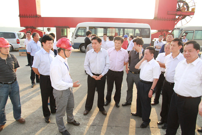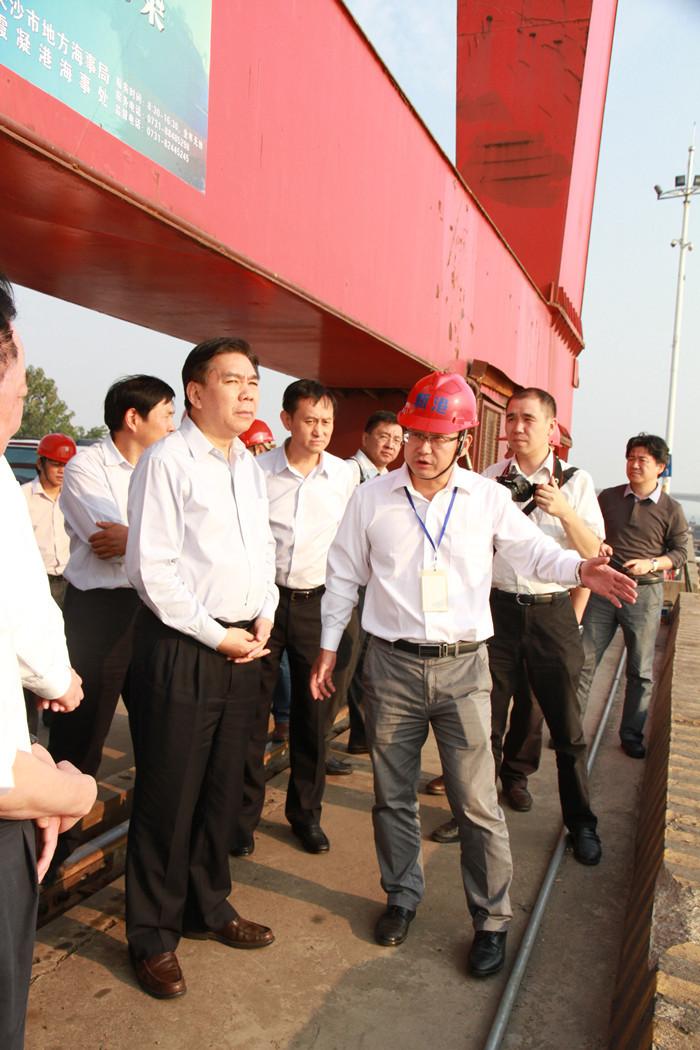 10月14日下午,國家發改委副主任徐憲平,交通運輸部綜合規劃司副司長蘇杰,國家發改委基礎產業司司長黃民,國家發改委規劃司副司長袁喜祿等領導一行,在湖南省人民政府副省長陳肇雄,長沙市領導余合泉等領導的陪同下就長江經濟帶建設來長沙新港調研。湖南長沙新港有限責任公司董事長、總經理、黨委副書記唐忠良,董事、副總經理張韜,董事、長沙集星集裝箱碼頭有限公司副總經理辛華等接待。 在長沙新港集裝箱碼頭上,集星公司副總經理辛華首先向徐憲平副主任一行介紹了長沙新港一、二期碼頭規模、貨源、業務、運營等情況,著重介紹了湘江長沙綜合樞紐試通航初期和長沙海事為長沙新港開辟樞紐“綠色通道”后,碼頭業務及生產情況對比。辛華介紹說:“樞紐‘綠色通道’開辟以來,船舶進出閘通過艘次提高26.84%;集裝箱吞吐量達46412標箱,比‘綠色通道’開辟之前提高86.28%。”隨后,新港公司副總經理張韜向徐憲平副主任一行介紹了三期工程規劃、建成規模、建設進展等情況。 徐憲平副主任指出,湖南這些年發展迅速,強大的水運網絡給予了湖南對外經濟發展強大的支持。長沙新港碼頭地理位置優越,硬件設施完備,足夠滿足碼頭日常生產需求;港口規劃及管理科學規范,集裝箱碼頭管理系統十分先進;碼頭生產井然有序,一派繁忙景象。徐憲平副主任肯定了長沙新港這幾年建設、經營所取得的成績并強調,三期建成后,港口功能將更加完善,有望成為國內一流的現代化內河港口,長沙新港前景可觀。 |