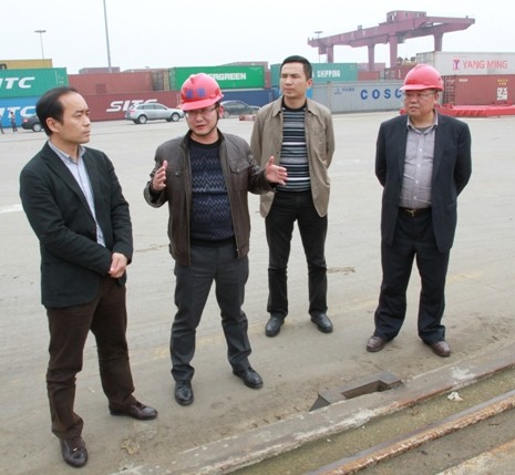 3月26日,湖南省交通廳總工舒行鋼在省水運管理局黨委委員、總工程師許足懷的陪同下,考察長沙新港的發展以及三期工程的施工建設情況。