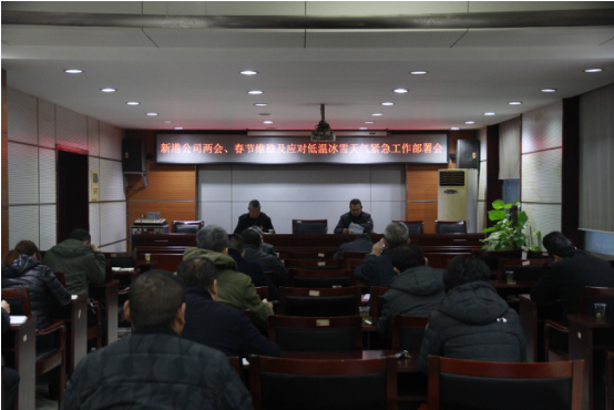 公司領(lǐng)導(dǎo)高度重視,召開工作部署緊急會(huì)議。 1月25日下午五點(diǎn)半,新港公司召開“兩會(huì)春節(jié)維穩(wěn)及應(yīng)對(duì)低溫冰雪天氣緊急工作部署會(huì)”。會(huì)上,首先由公司副總辛華同志傳達(dá)了市政府《關(guān)于進(jìn)一步做好應(yīng)對(duì)低溫雨雪冰凍天氣工作的緊急通知》以及交通集團(tuán)領(lǐng)導(dǎo)對(duì)維穩(wěn)和安全工作的指示精神,并針對(duì)新港公司實(shí)際情況要求各部門和單位采取措施,做好應(yīng)對(duì)防范工作。接著,新港公司黨委書記、董事長唐忠良同志做出重要指示,當(dāng)前公司工作重點(diǎn)要放在安全和維穩(wěn)上,公司領(lǐng)導(dǎo)要帶班值班,親臨一線,靠前指揮,第一時(shí)間處理突發(fā)問題。他還要求公司各部門負(fù)責(zé)人要從思想上高度重視極端天氣給碼頭生產(chǎn)作業(yè)造成的惡劣影響,要積極行動(dòng)采取有效措施應(yīng)對(duì)低溫雨雪冰凍天氣。  各部門主動(dòng)作為,多方聯(lián)動(dòng),一線防范應(yīng)對(duì)。 辦公室通過公司自媒體加強(qiáng)宣傳工作,溫馨提示員工上下班途中注意交通安全。安保部嚴(yán)格按照交通集團(tuán)領(lǐng)導(dǎo)要求,落實(shí)24小時(shí)值班制度,值班人員堅(jiān)守崗位,保證通訊暢通,每天定時(shí)向交通集團(tuán)匯報(bào)安全情況。設(shè)備部緊急采購麻袋、工業(yè)鹽和草繩等防凍物資,同時(shí)維修人員頂著嚴(yán)寒冒著凍雨搶修和維護(hù)生產(chǎn)作業(yè)設(shè)備,保證設(shè)備良好運(yùn)轉(zhuǎn)。生產(chǎn)運(yùn)營部密切關(guān)注碼頭前沿作業(yè)情況,在確保安全的前提下,搶卸船舶重要物資。市場(chǎng)營銷部積極與客戶溝通,及時(shí)做好解釋工作。新港三期工程部與施工方對(duì)接,確保三期工程建設(shè)安全。