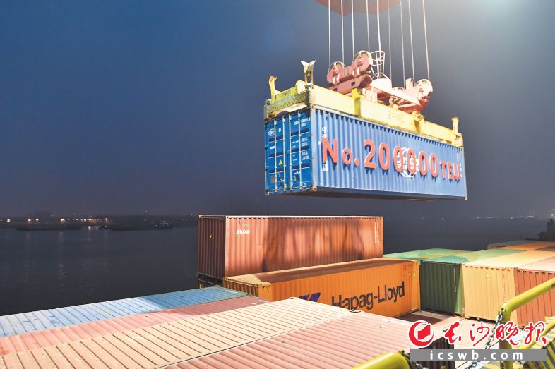 12月28日18時08分,長沙集星碼頭1號泊位,一個標注著“NO.200000TEU”的中遠海集裝箱,通過遠程操控穩穩起吊裝上澳鑫號船舶。至此,長沙港集裝箱年吞吐量首破20萬標箱,創造了長沙港發展史上一個新的“里程碑”,標志著長沙港邁上了我國內河支線港口領先地位。據了解,長沙水運口岸新港作業區2021年貨物吞吐量達到1450萬噸,再創歷史新高。