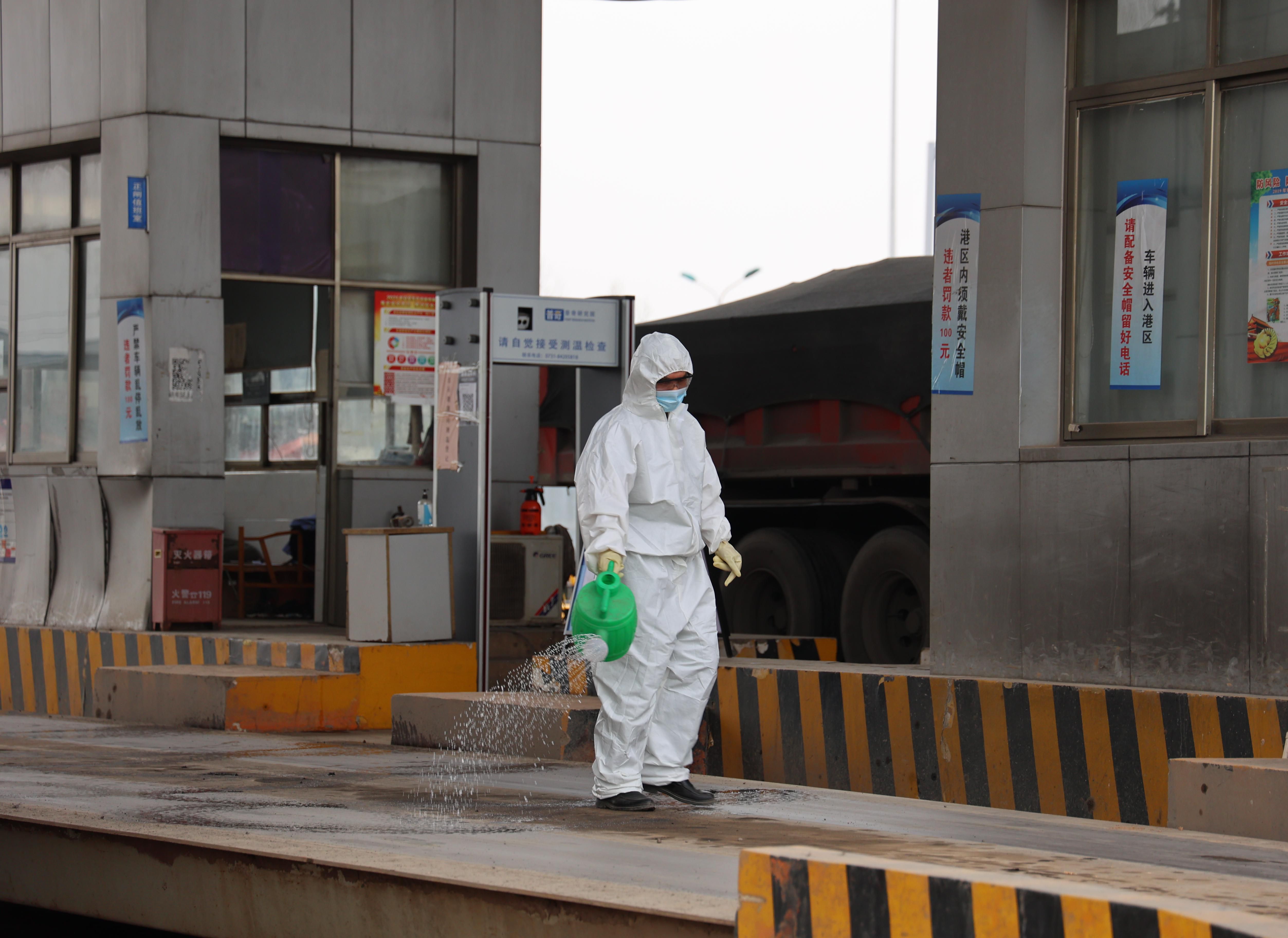 在港區閘口處、辦公樓出入處均設置了紅外線體溫門,對進出人員要求佩戴口罩,實行嚴格的檢查場所碼、量體溫等工作。有序開展排查檢測工作,對重點場所區域加強防疫檢查、環境消殺。