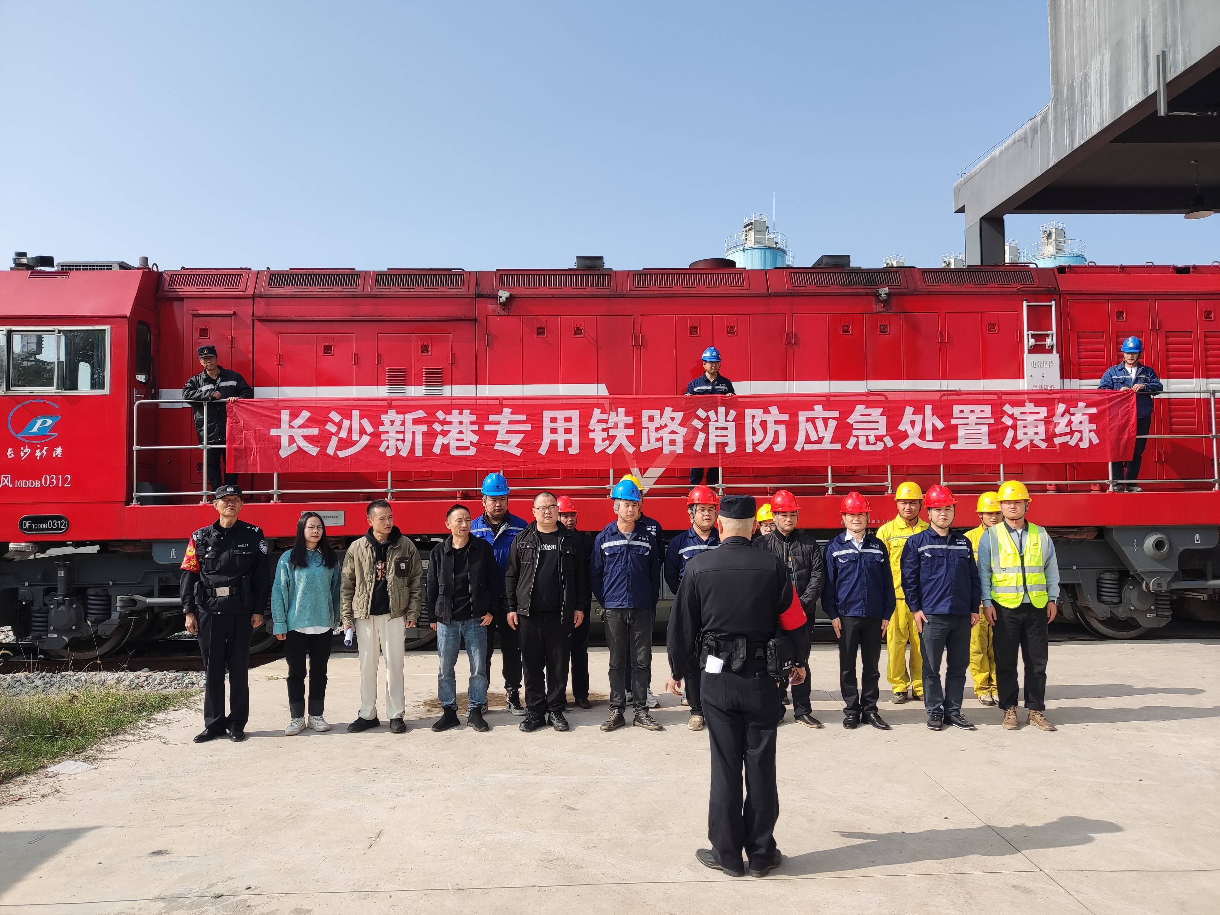 11月14日,長交集團新港公司聯合長沙北站派出所、青竹湖街道及周邊社區開展新港專用鐵路消防應急處置演練。