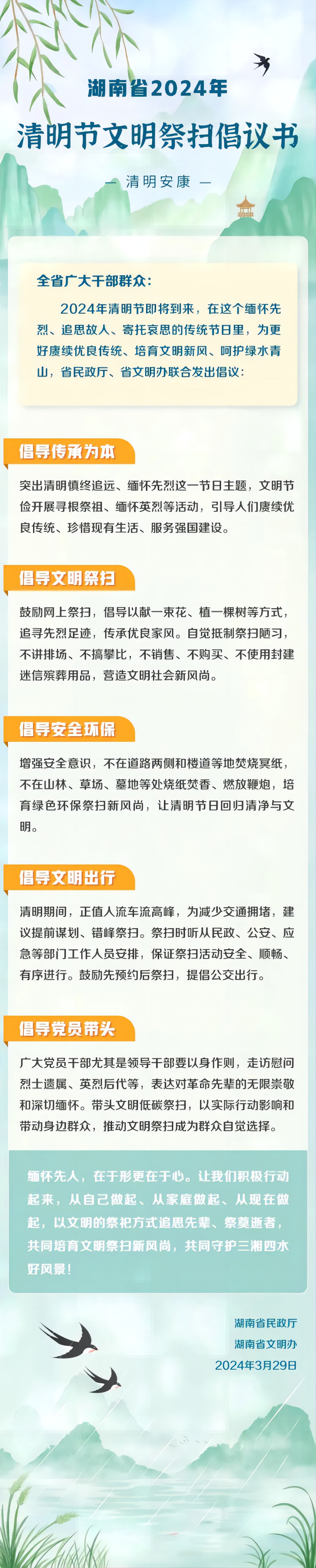 清明節文明祭掃倡議書(轉自湖南省民政廳、湖南省文明辦)