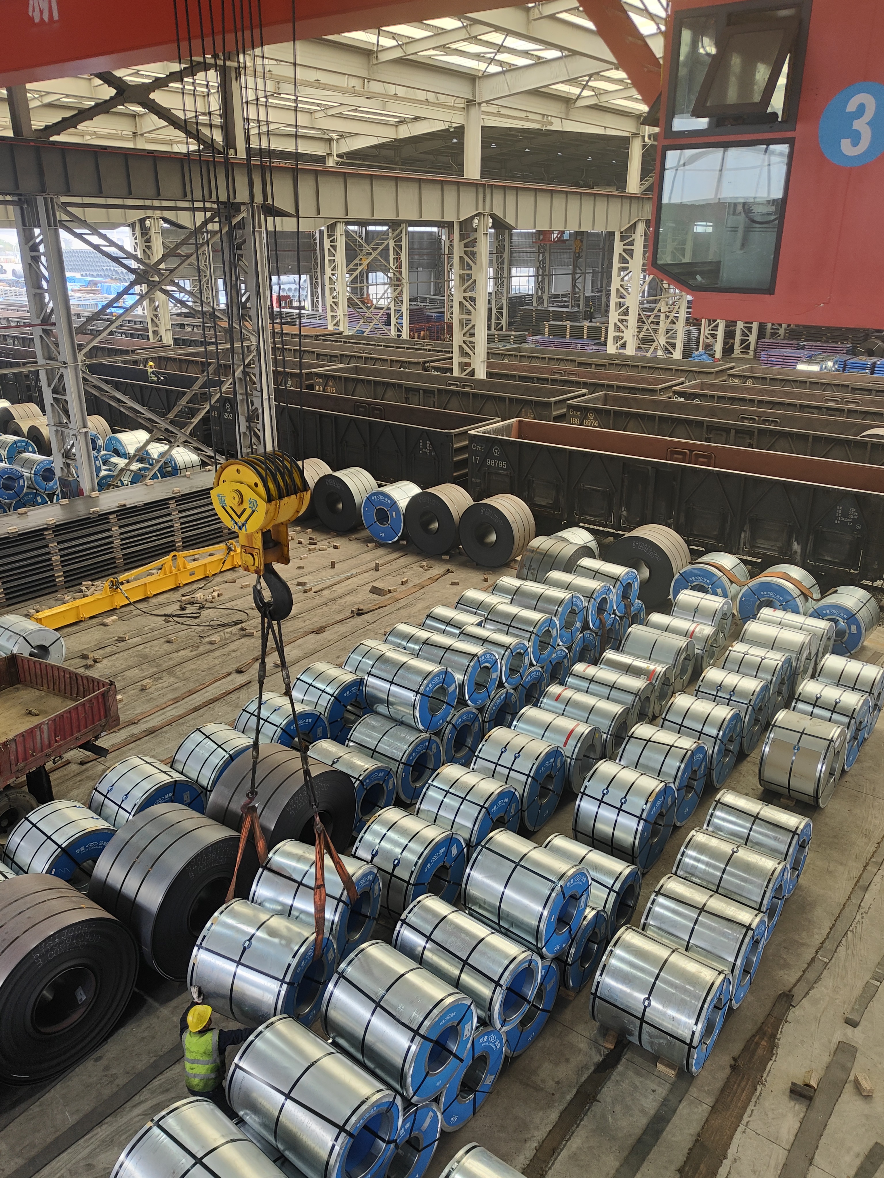 圖為“五一”期間,長沙新港專用鐵路正在裝卸鋼卷