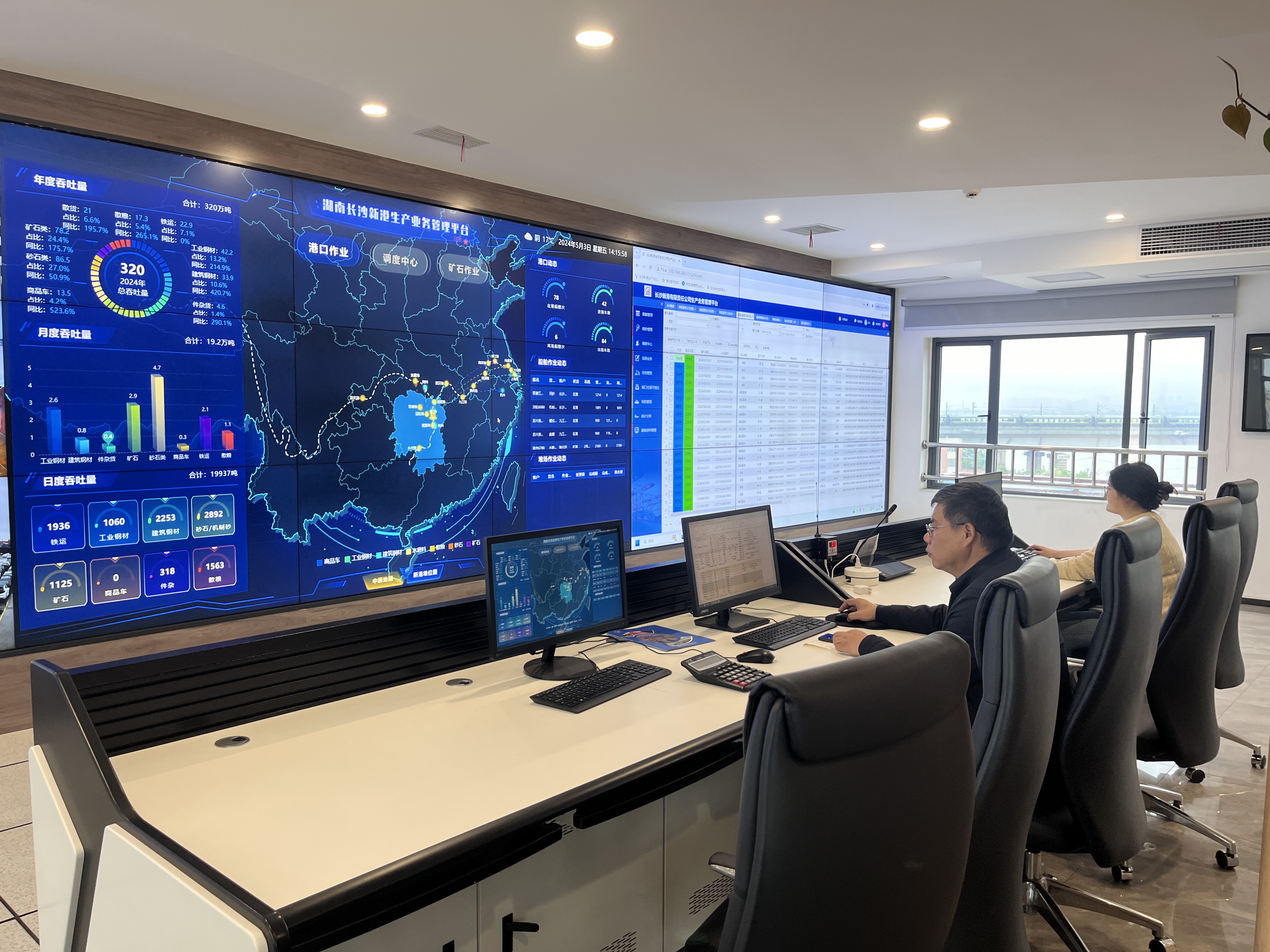 圖為“五一”期間,長沙新港智控調(diào)度中心調(diào)度港區(qū)運行。