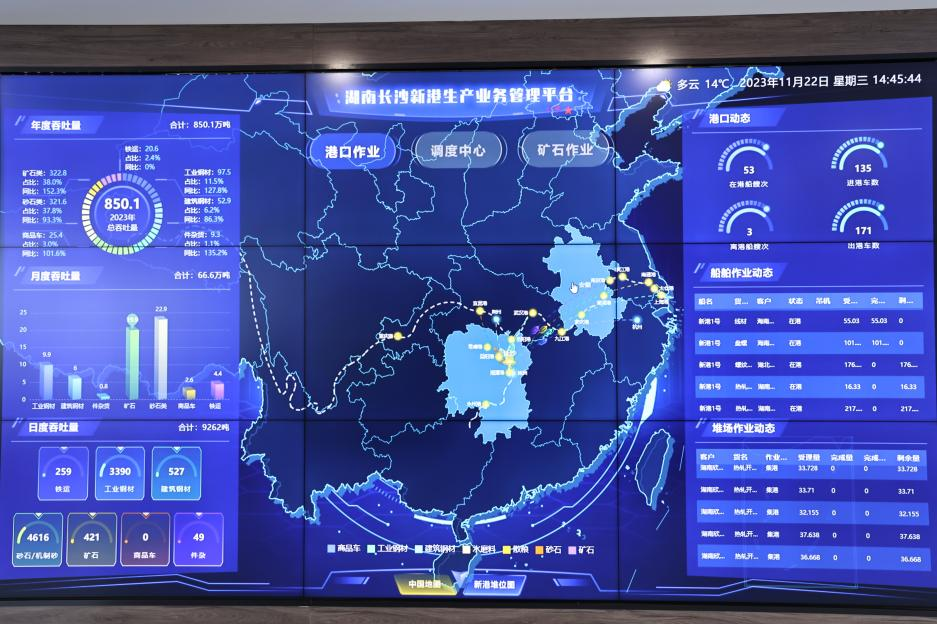 二、創新賦能:智慧綠色雙引擎驅動升級 數字化轉型是長沙新港三年變革的鮮明注腳。2023年,長沙新港智控調度中心和生產業務管理平臺全面上線,實現船舶動態監測、港口實時監控等智能化管理;2024年,“電永磁鐵吊具”等設備投產,有效提升裝卸效率,降低人力成本;2025年,依托信息化平臺構建“數字港+多式聯運”模式,提高貨物周轉效率,縮短客戶報港、提貨流程。