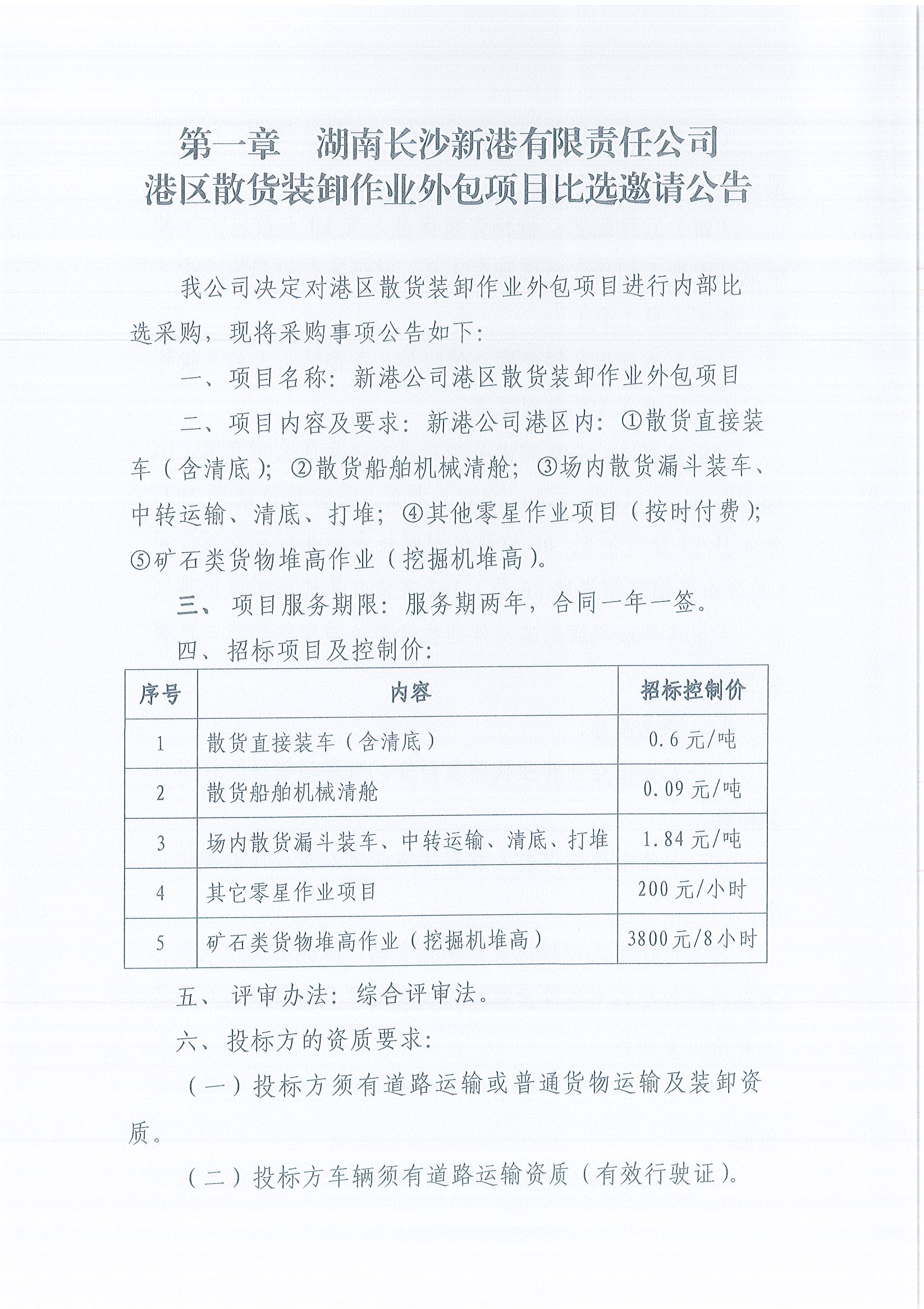 湖南長沙新港有限責任公司港區散貨裝卸作業外包項目比選邀請公告