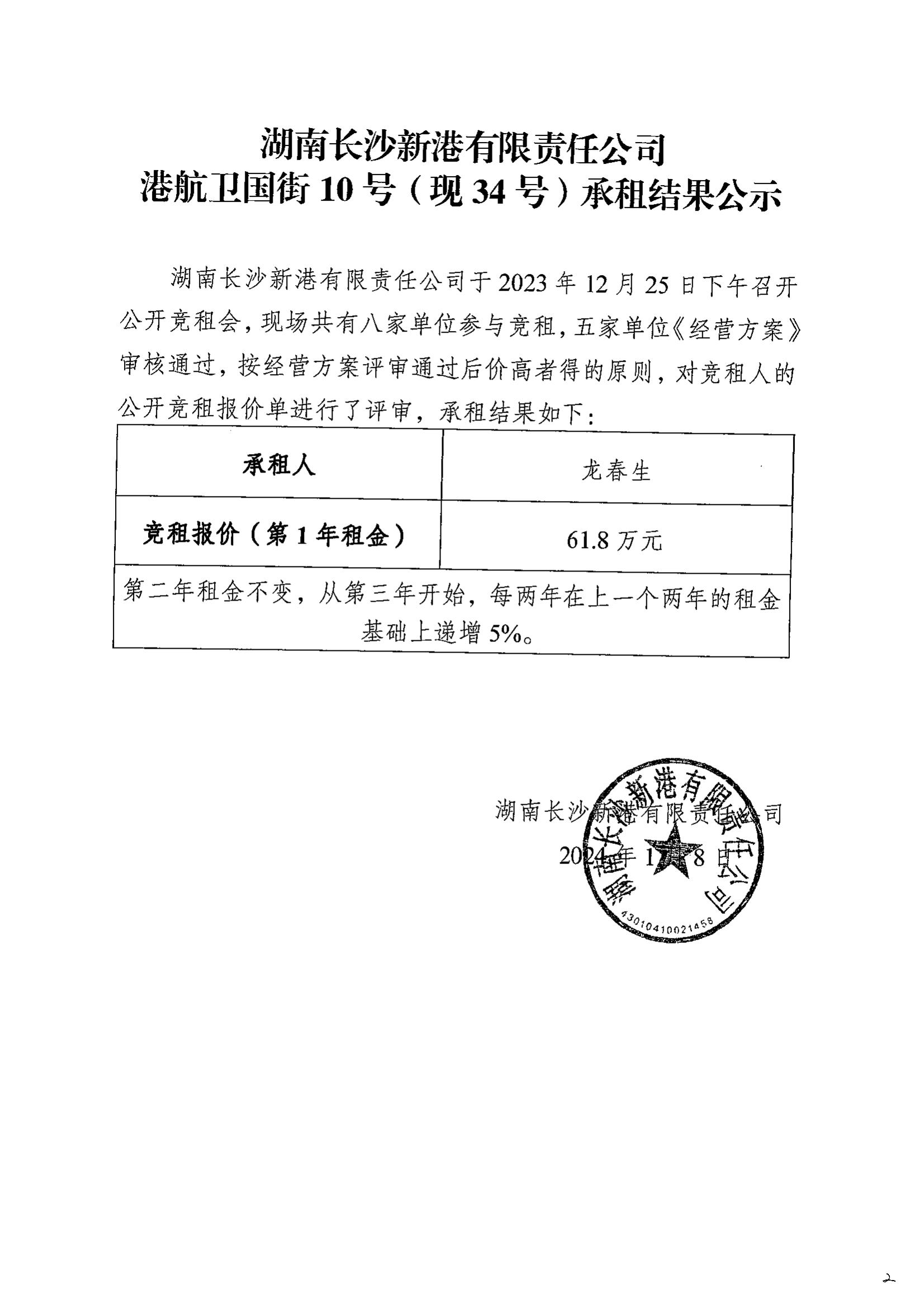 港航衛(wèi)國街10號(現(xiàn)34號)承租結(jié)果公示