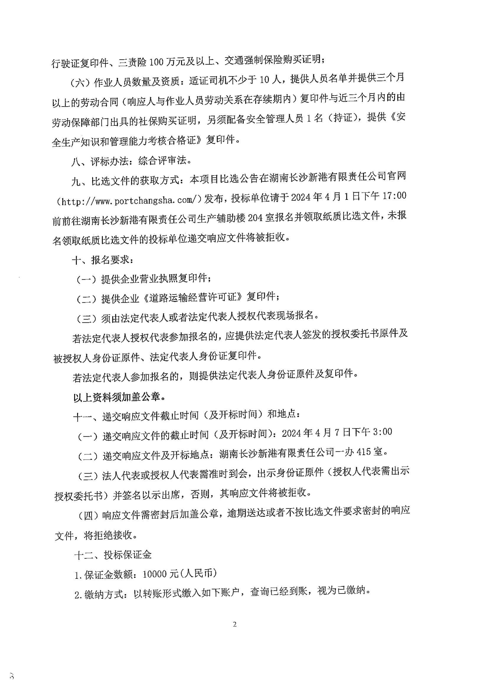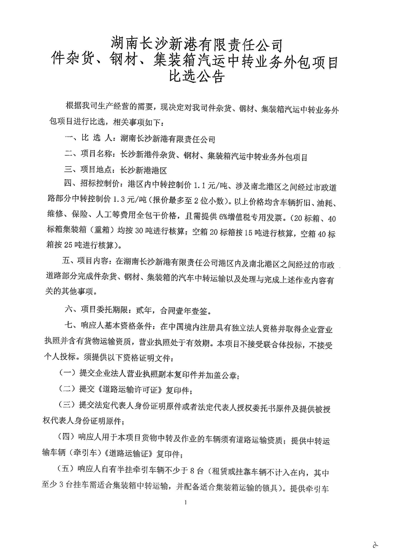 長沙新港件雜貨、鋼材、集裝箱汽運中轉業務外包項目比選公告